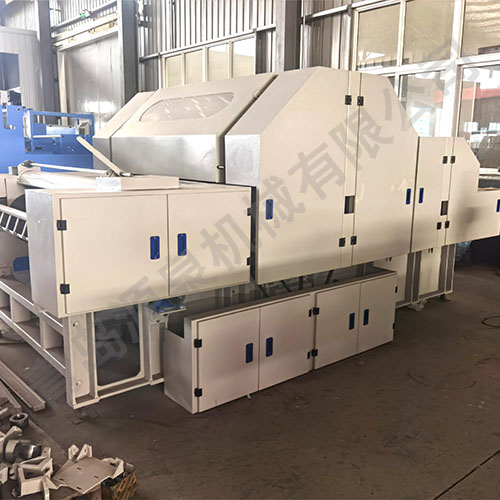 本機(jī)主要開松、梳理山羊絨、綿羊絨、牦牛絨、駝絨等動物纖維。經(jīng)過逐 級開松、梳理、去粗、去雜,使原料達(dá)到單纖維狀態(tài)供后道梳理工序使用 本機(jī)具有開松效果好、下機(jī)產(chǎn)量高、纖維損傷率低的優(yōu)點(diǎn),是羊絨分梳聯(lián) 合機(jī)中的優(yōu)選設(shè)備之一。
