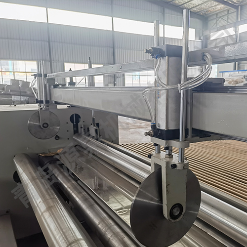 該機(jī)器采用飛刀切割或電熱絲方式橫切,并配有四把縱切切刀,其主要用于將噴膠棉、無膠棉、硬質(zhì)棉等進(jìn)行切邊、收卷并裁剪成符合要求的尺寸規(guī)格。本機(jī)具有計(jì)數(shù)功能、跟蹤橫切功能。